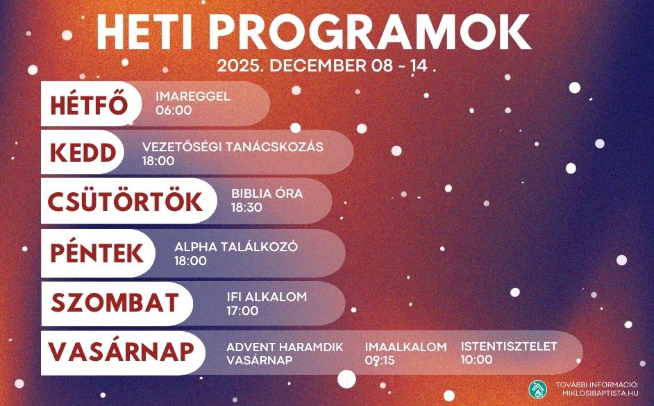 Programjaink: 2025. december 08. – 14.