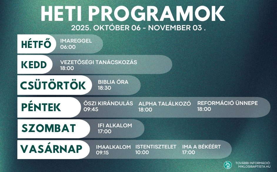 A Szigetszentmiklósi Baptista Gyülekezet programjai
