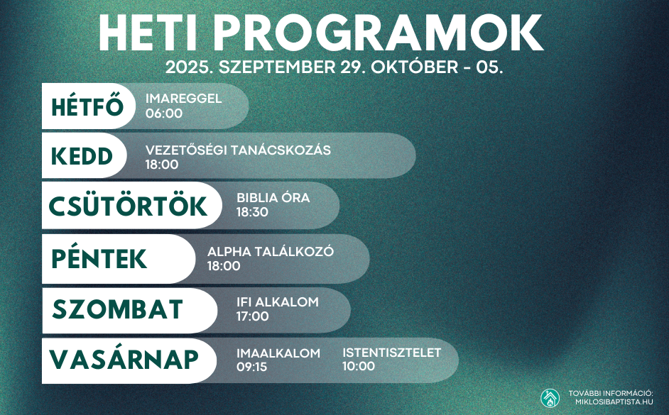 Programjaink: 2025. szeptember 29. október – 05.